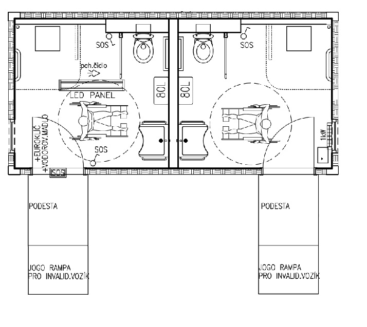 Naše nové bezbariérové toalety a sprchy řeší veškeré nástrahy, které na vozíčkáře v těchto a podobných zařízeních čekají. Tato hygienická zařízení jsou navržena s ohledem na specifické potřeby jejich uživatelů s cílem poskytnout maximální komfort a bezpečnost. Otevření toalet a sprch je možné pouze euroklíčem, což zajišťuje jejich dostupnost pouze oprávněným uživatelům. Kromě toho jsou vybaveny pohybovým čidlem, které aktivuje osvětlení a ventilaci při vstupu do prostoru.